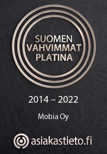 Vuodesta 2017 Mobia Oy:lle on myönnetty Suomen Vahvimmat Platina sertifikaatti. Tämän saa yritys, joka on kuulunut yhtäjaksoisesti vähintään kolme vuotta luottoluokituksen kahteen korkeimpaan luokkaan (AAA, AA+) .